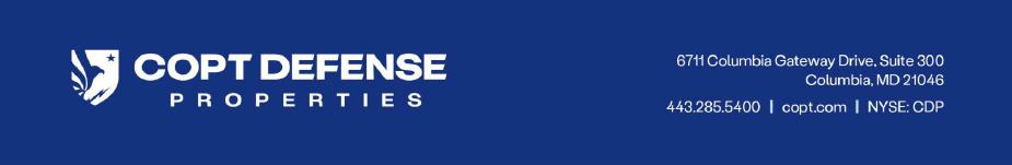 COLUMBIA, MD (BUSINESS WIRE) September 23, 2025 – COPT Defense Properties (NYSE: CDP) (“COPT Defense” or the “Company”) announced that its operating partnership, COPT Defense Properties, L.P. (the “Operating Partnership”), priced an underwritten public offering (the “Offering”) of $400 million of 4.500% Senior Notes due 2030 (the “2030 Notes”). The Company will fully and unconditionally guarantee the Operating Partnership’s obligations under the 2030 Notes. The Offering is expected to close on October 2, 2025, subject to the satisfaction of customary closing conditions.