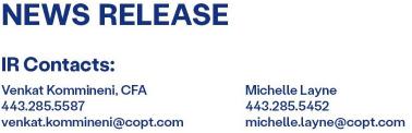 COPT Defense Prices $400 Million of 4.500% Senior Notes due 2030
